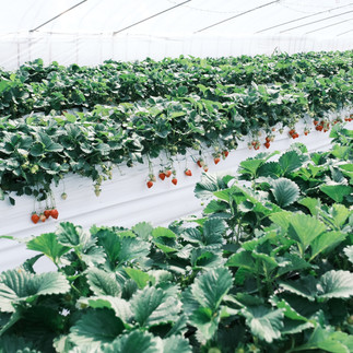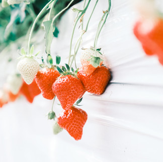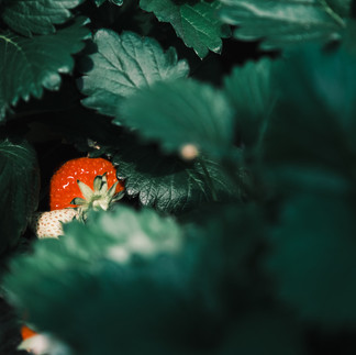 ハウスの中でたくさん顔を覗かせるイチゴは、色づきや大きさ、かたちもばらばらで、並び方によってはイチゴたちが家族で並んでいるように見えて可愛らしく、カメラで切り取るのも楽しかった。
